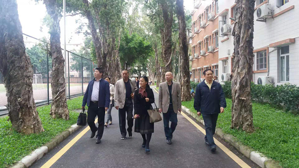 (校长办公室供稿)3月15日下午,广州市发展和改革委员会社会处副处长邱立雄、调研员高持白,广州市教育局规划建设处处长崔萍、副调研员韩芸,广州市教育基建装备中心副主任仇雁等一行莅临我校考察调研。学校党委副书记招乐辉接待了调研组一行。